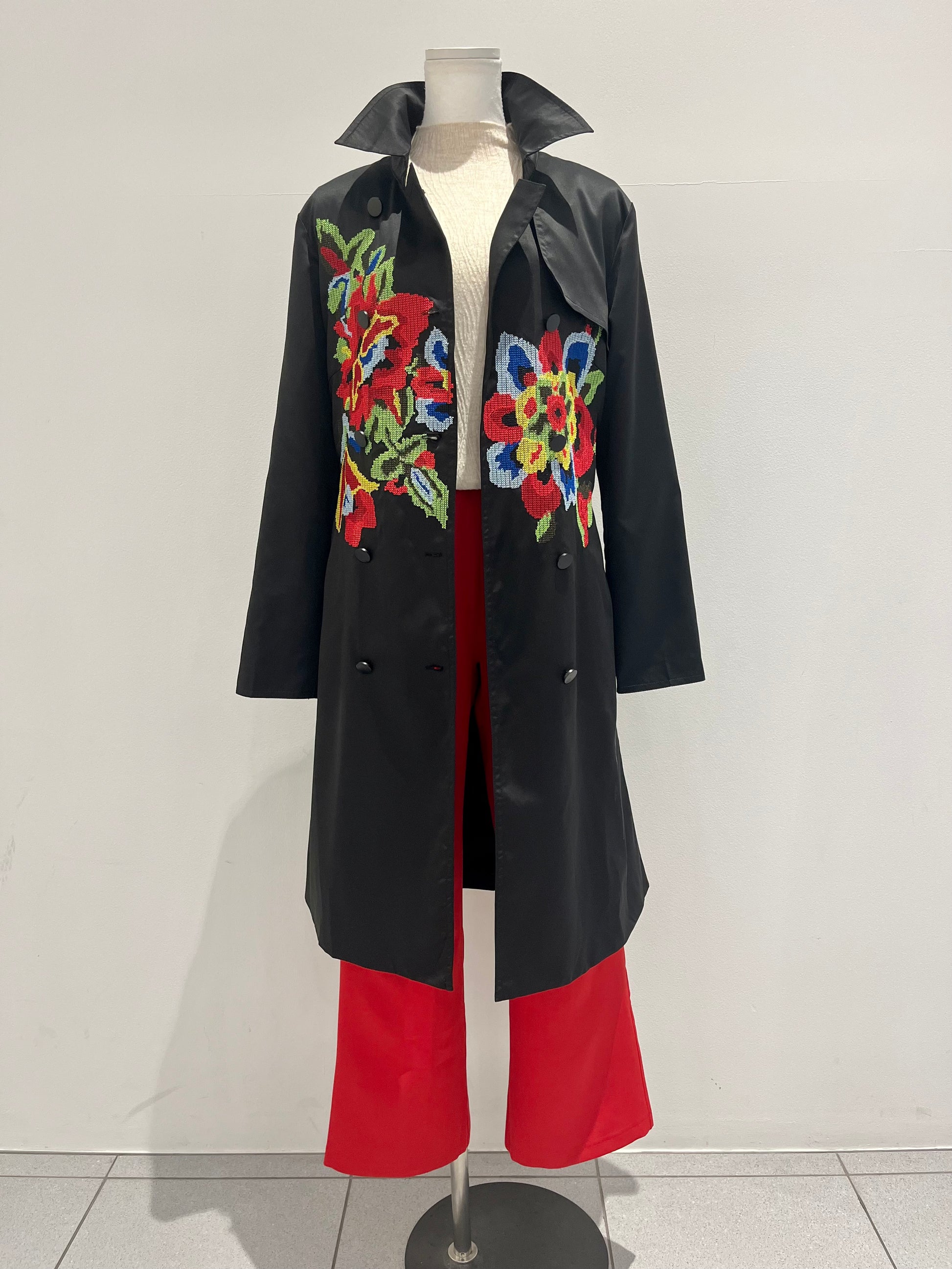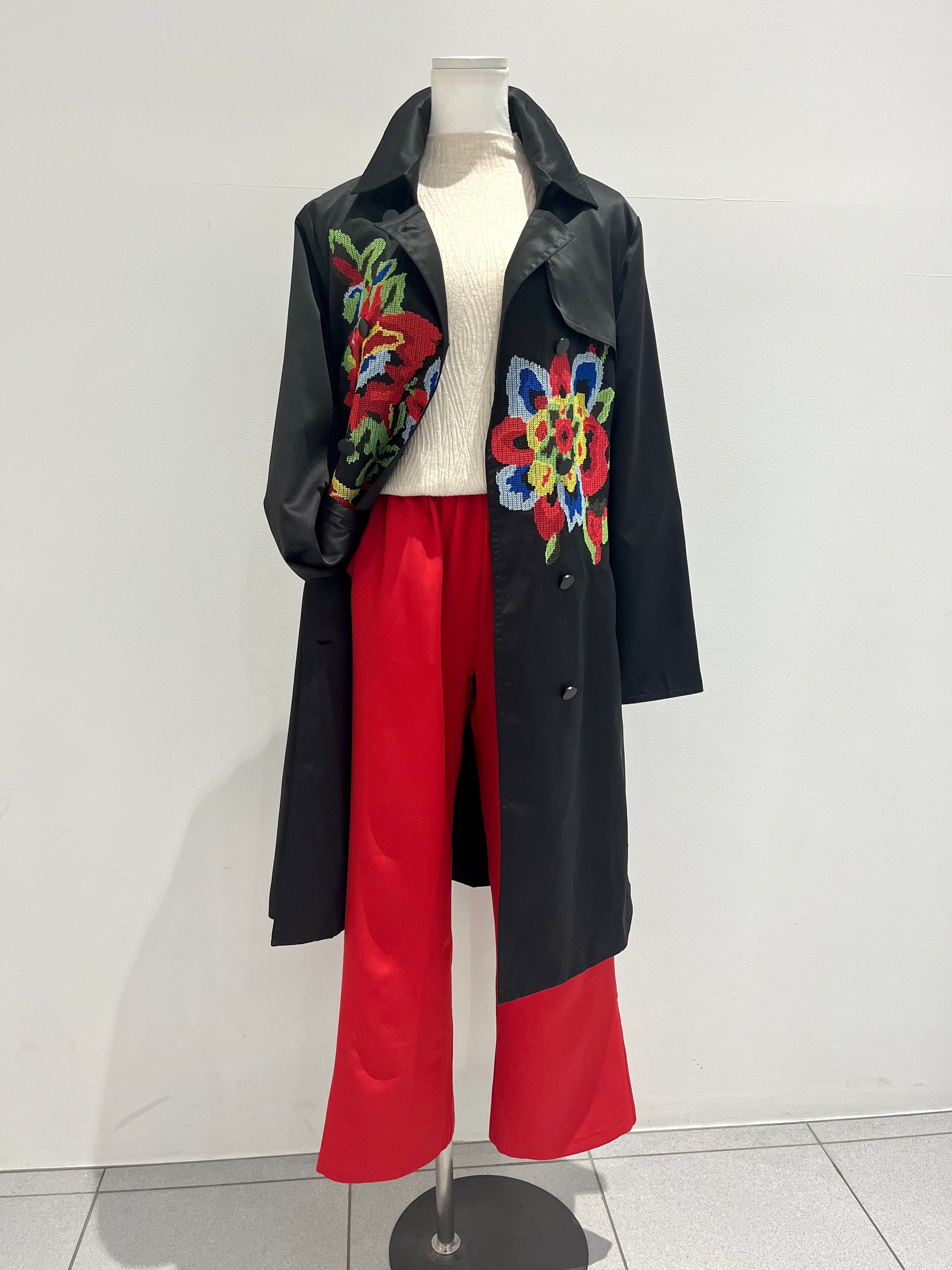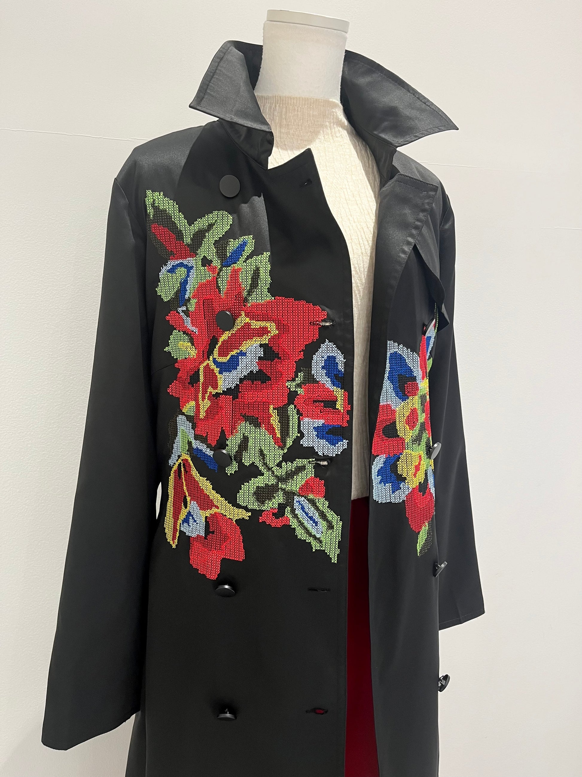 クロス刺繍トレンチコート〈ブラック〉