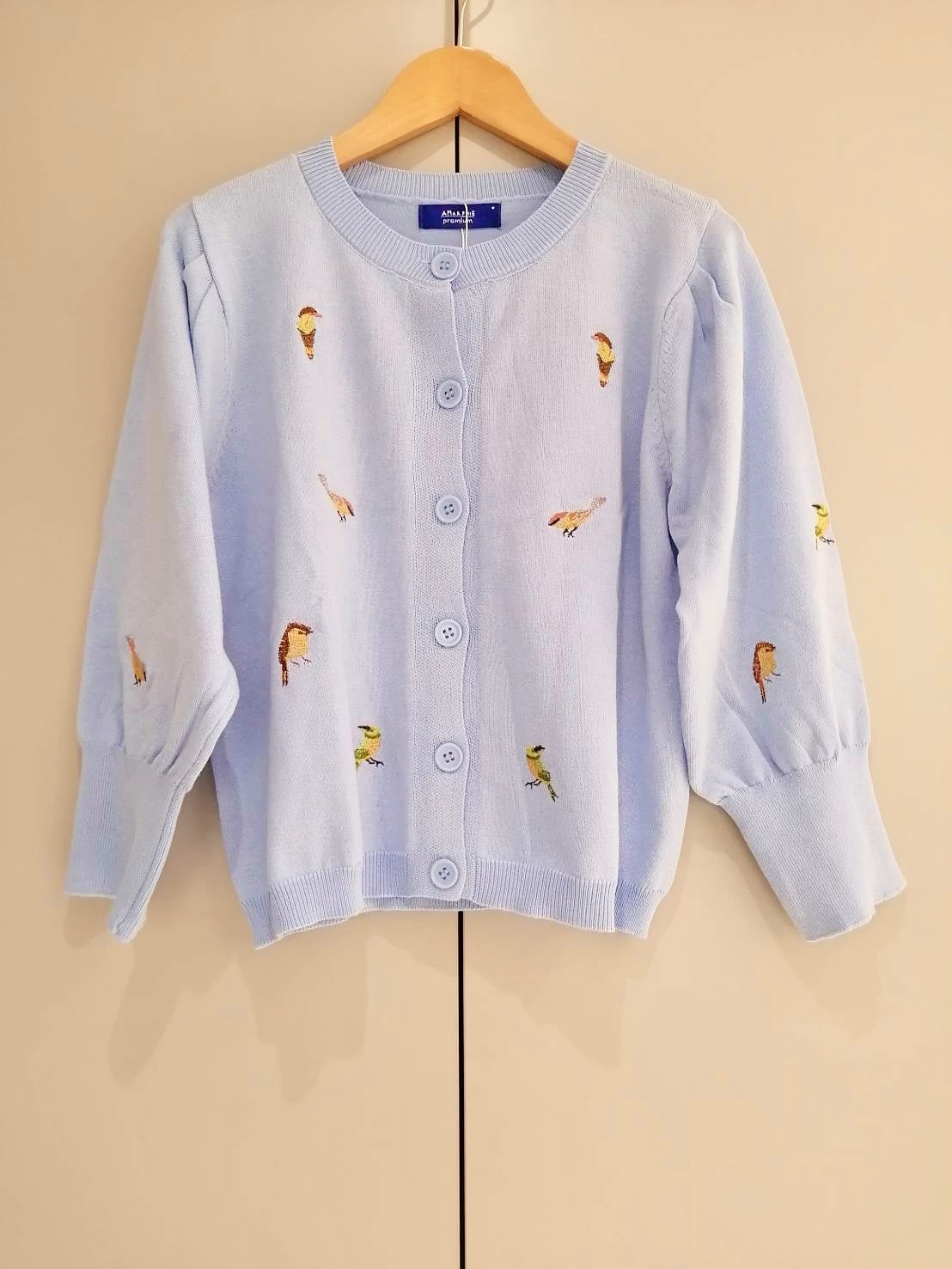 小鳥刺繍ニットカーディガン〈ブルー〉