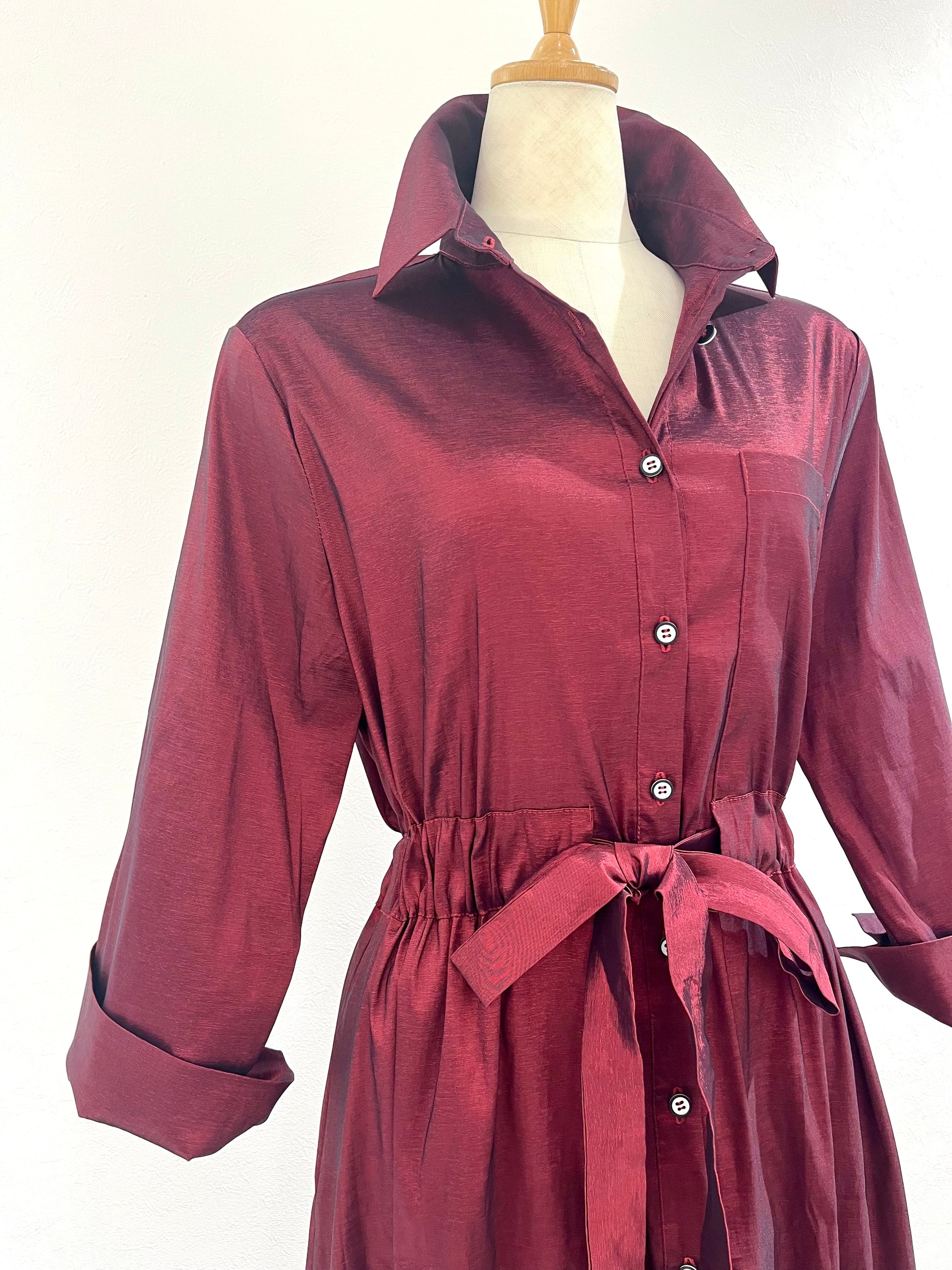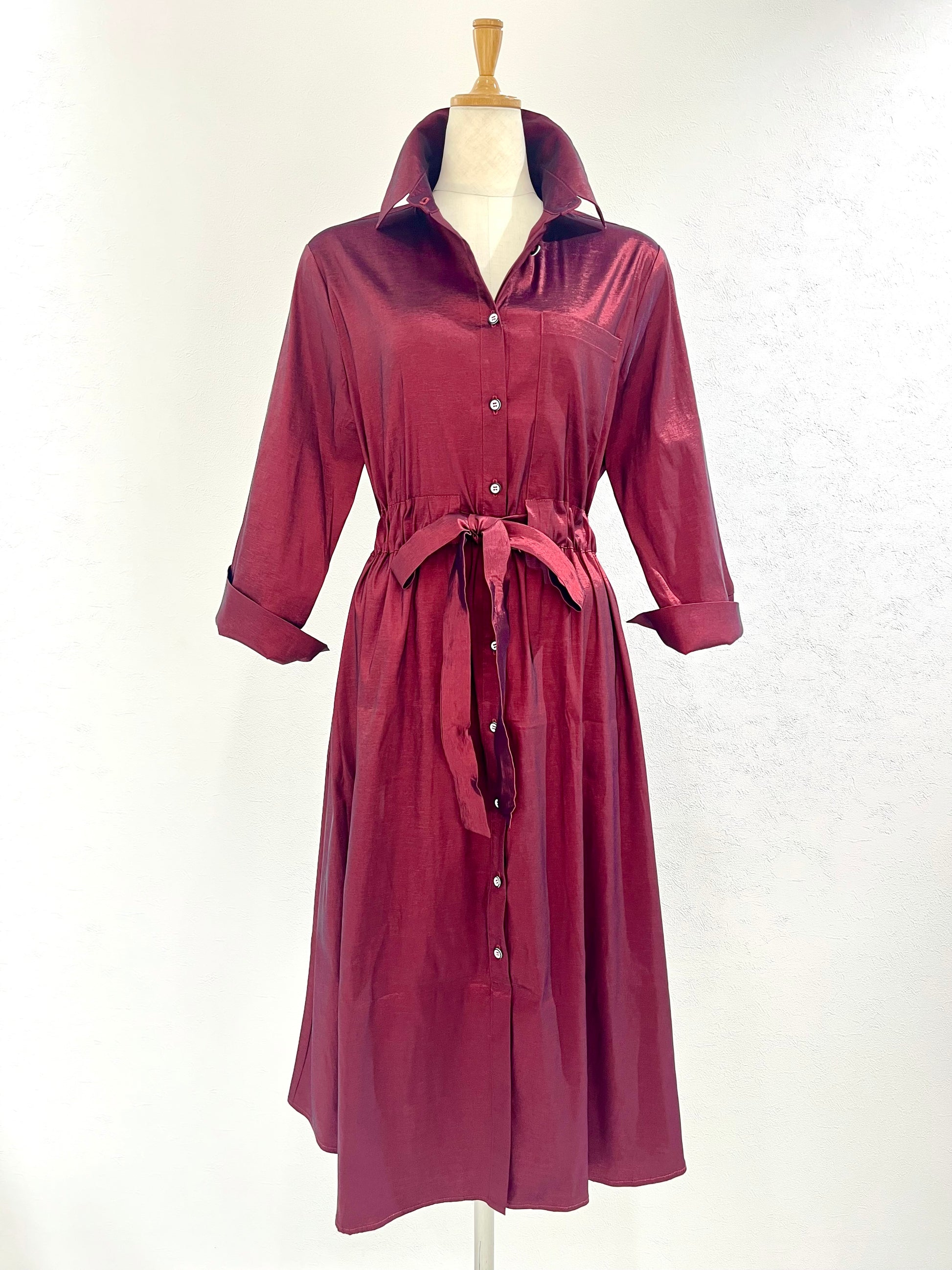 光沢のある生地を使用したワンピースです。
