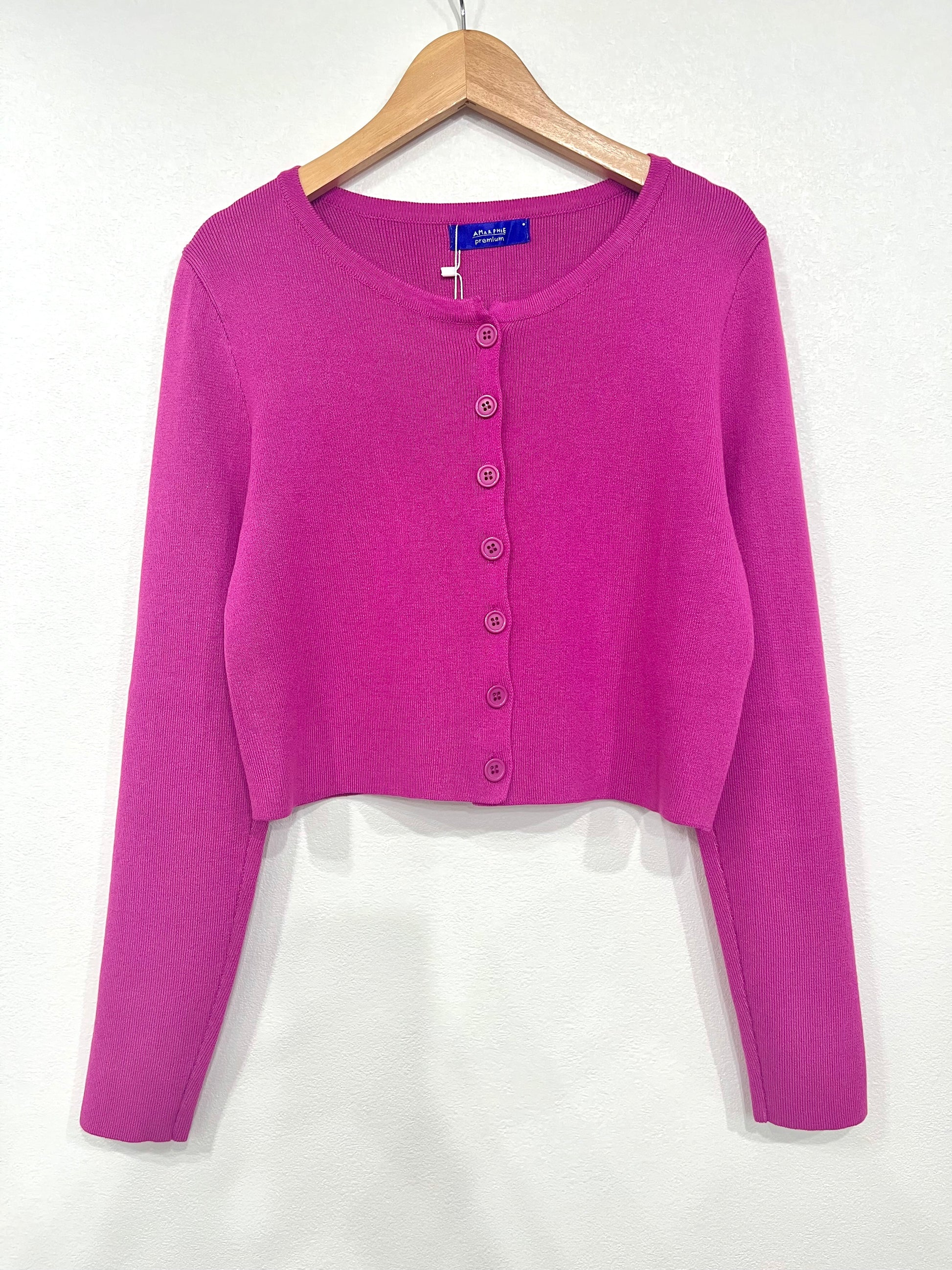 ショート丈カーディガン〈ダークピンク〉