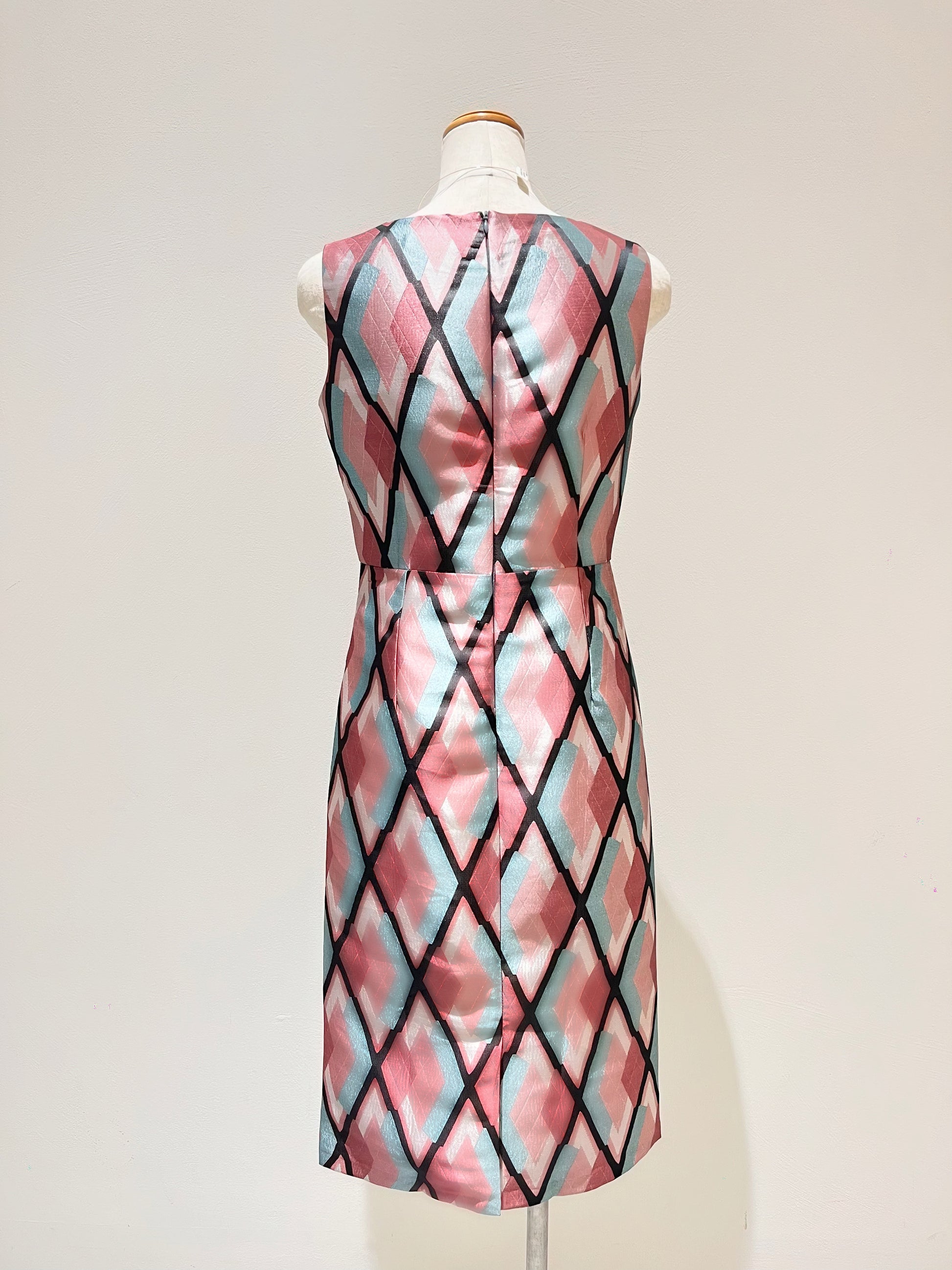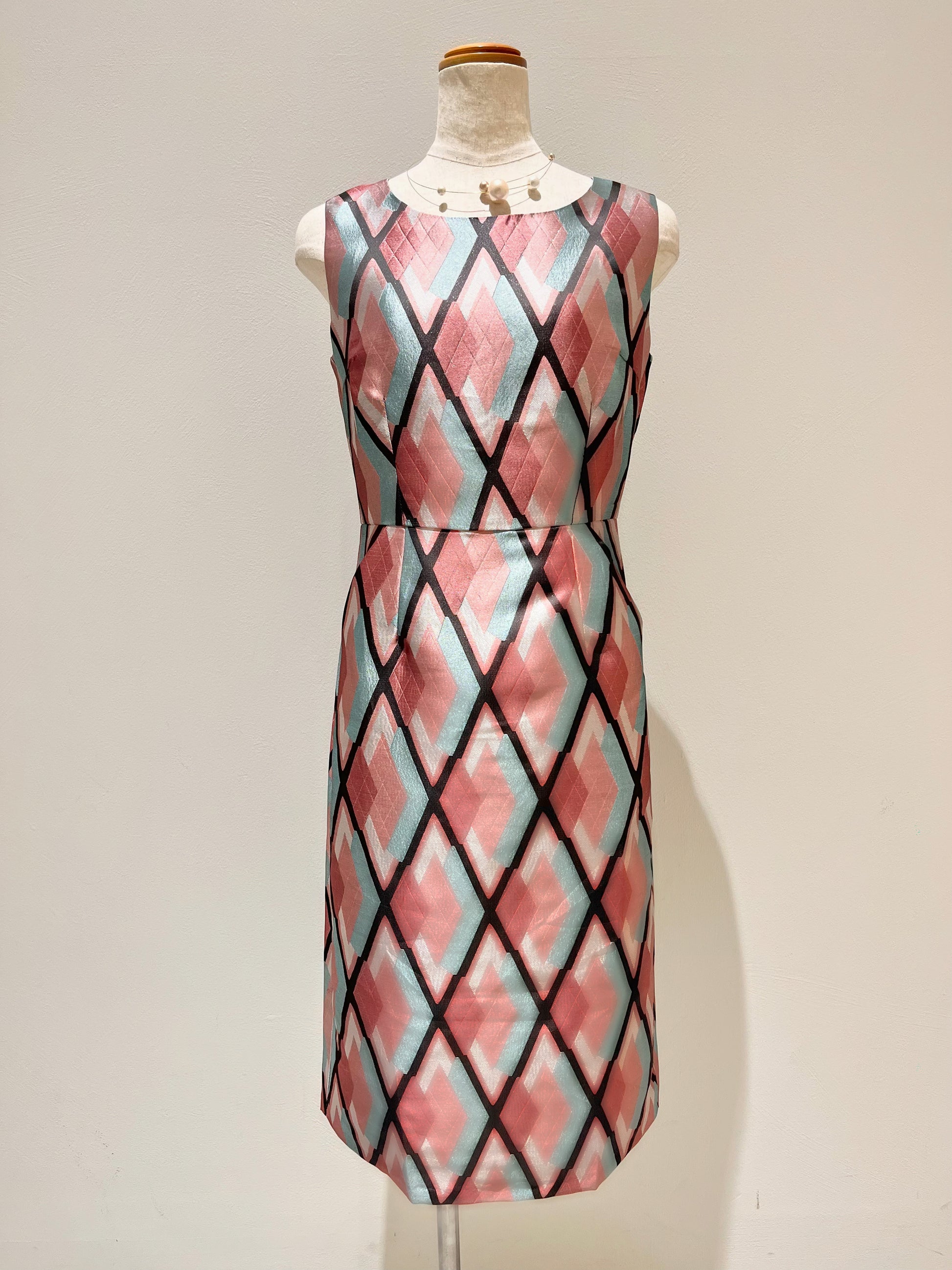 ジャガードノースリーブタイトワンピース〈ピンク柄〉