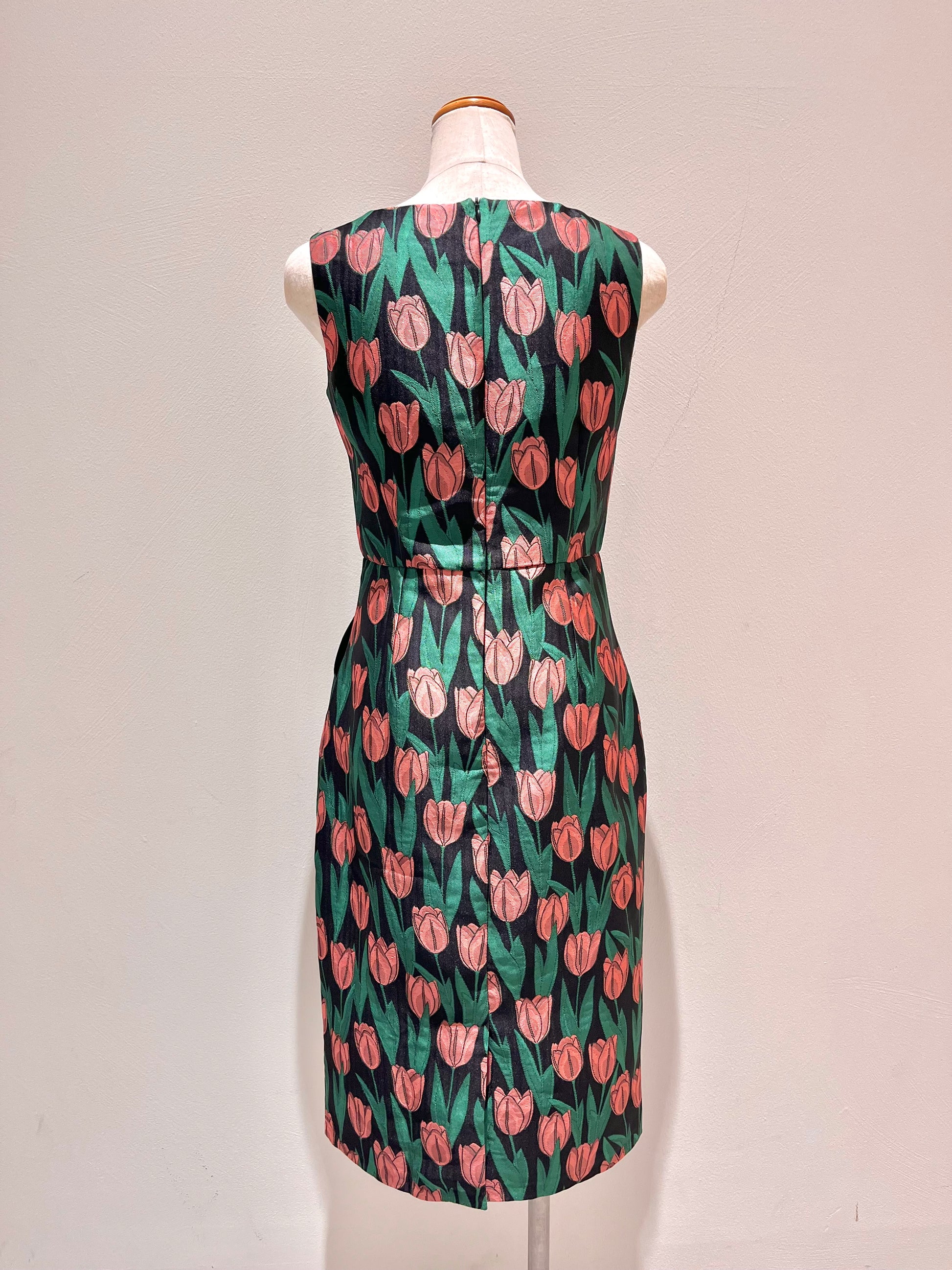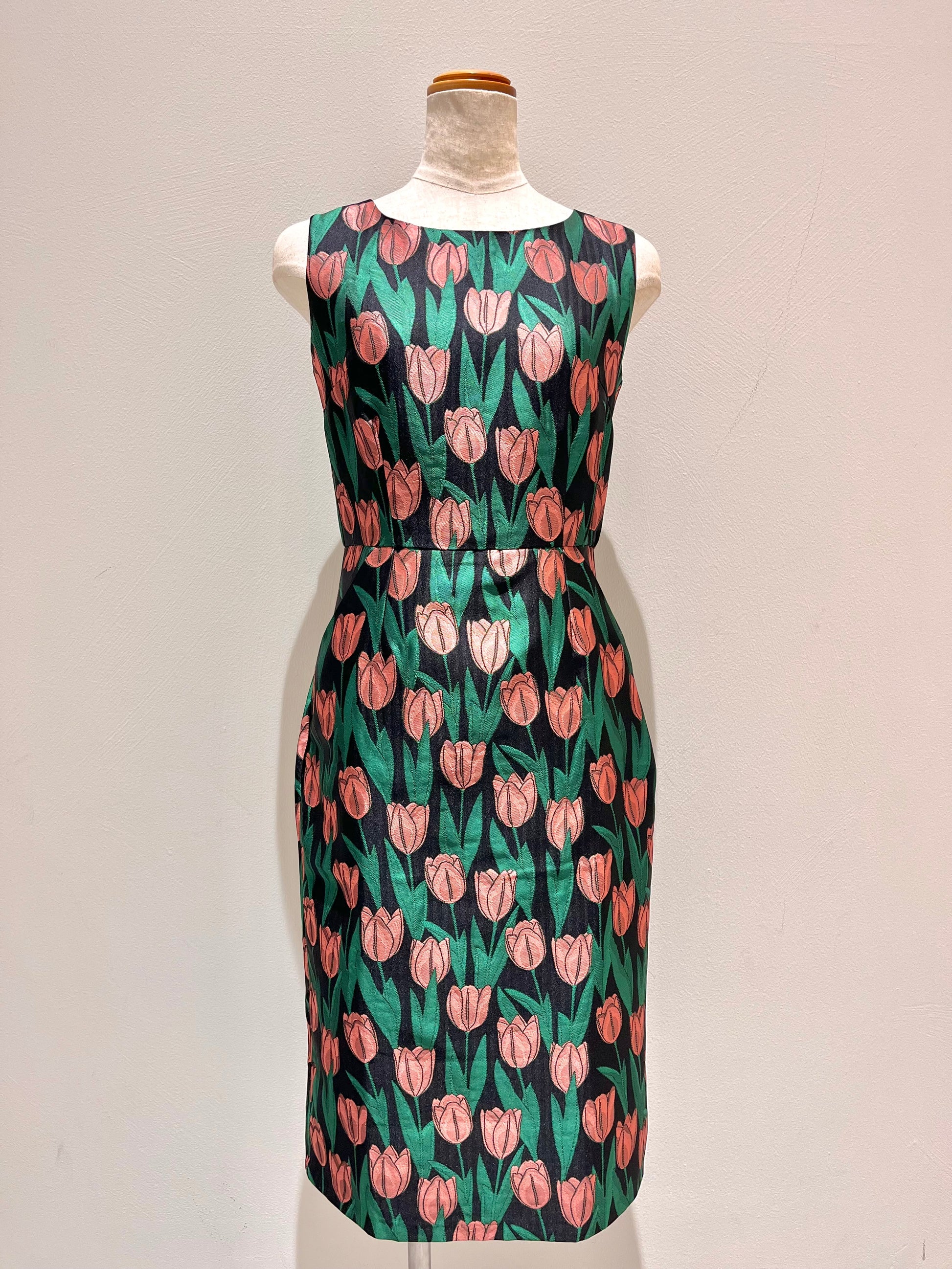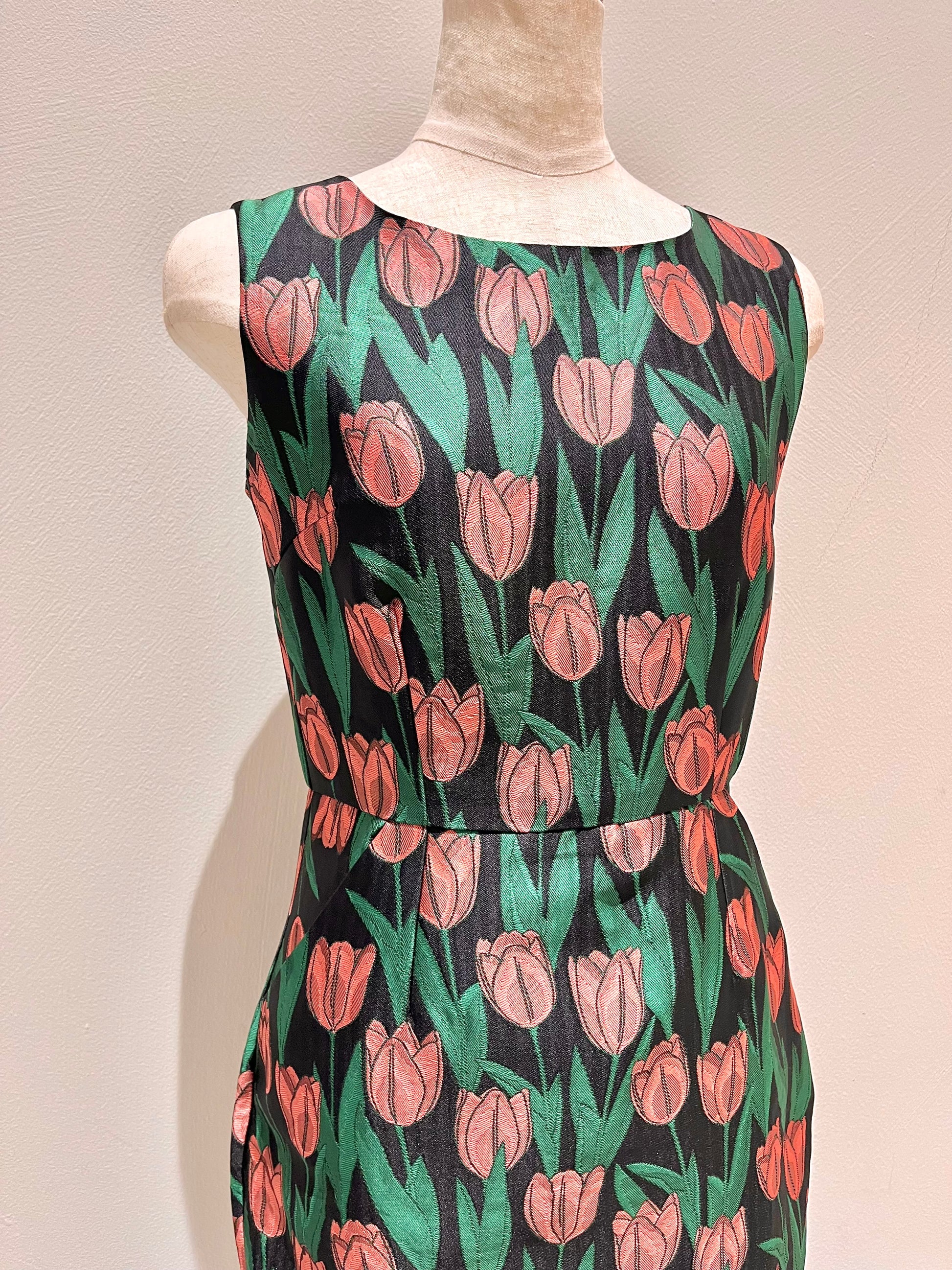 ジャガードノースリーブタイトワンピース〈ブラックプリント〉