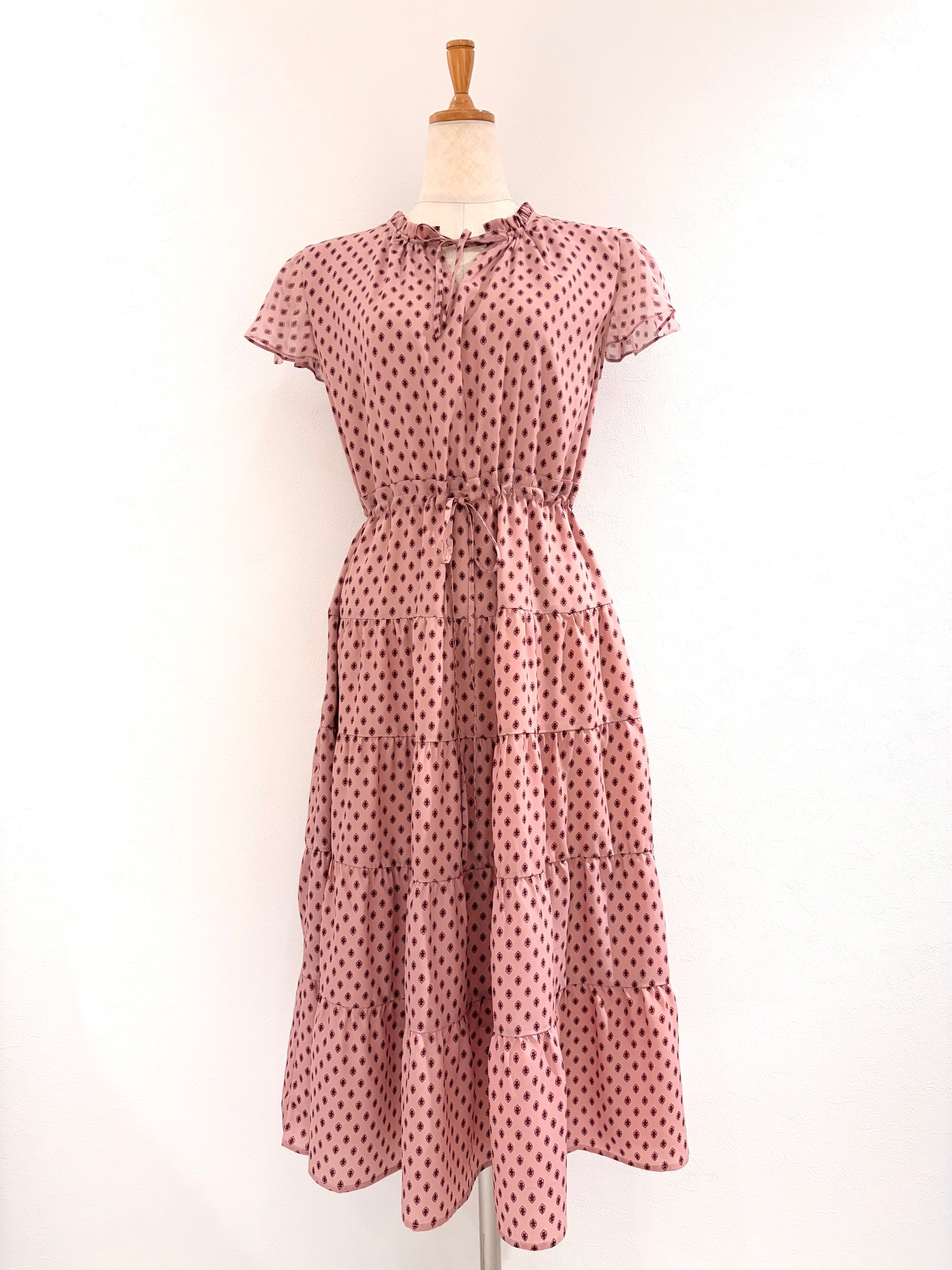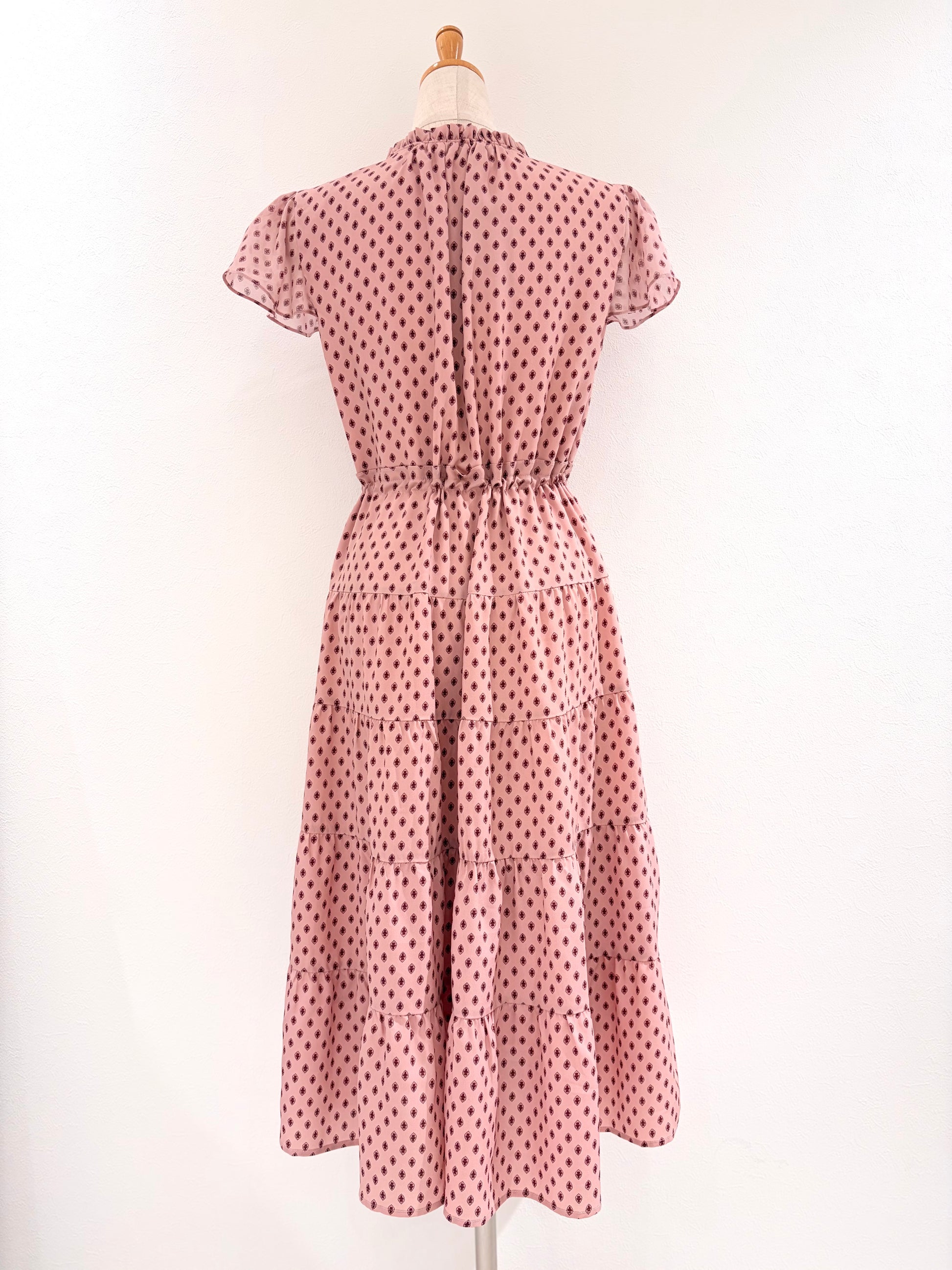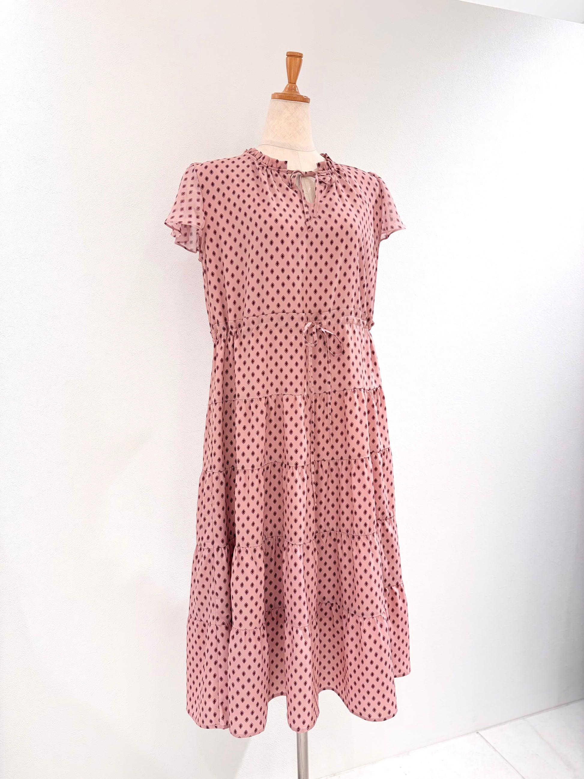 フレンチスリーブワンピース〈ピンク柄〉