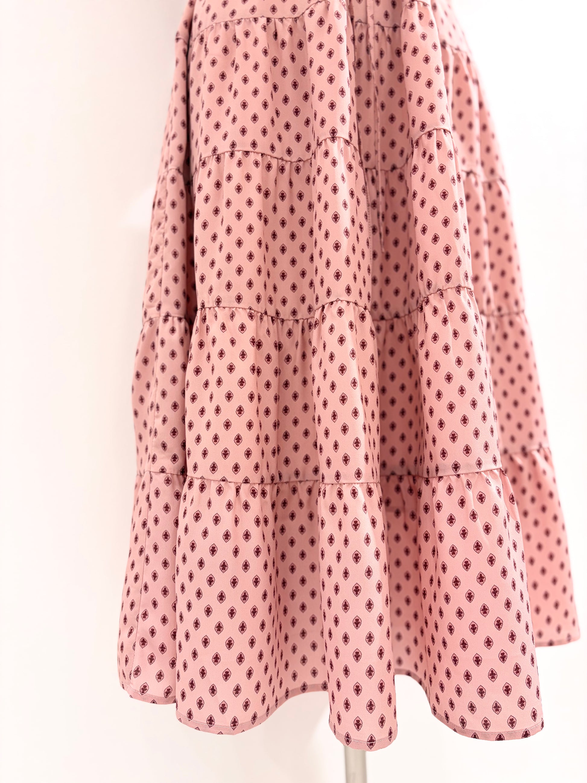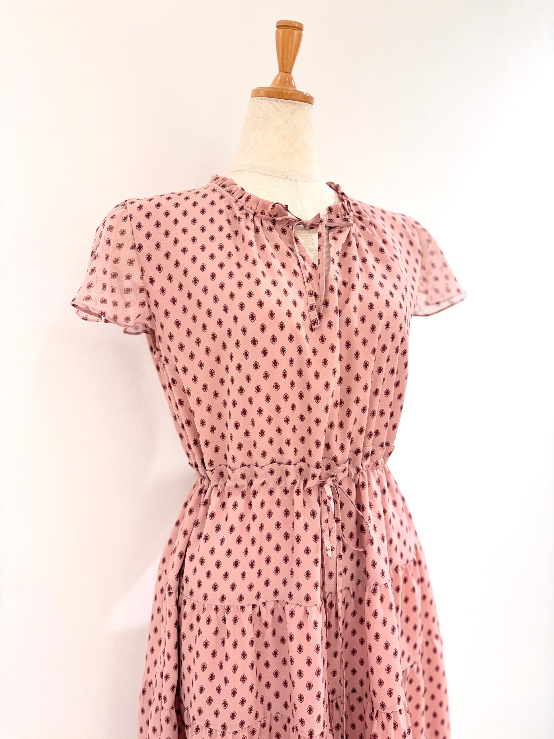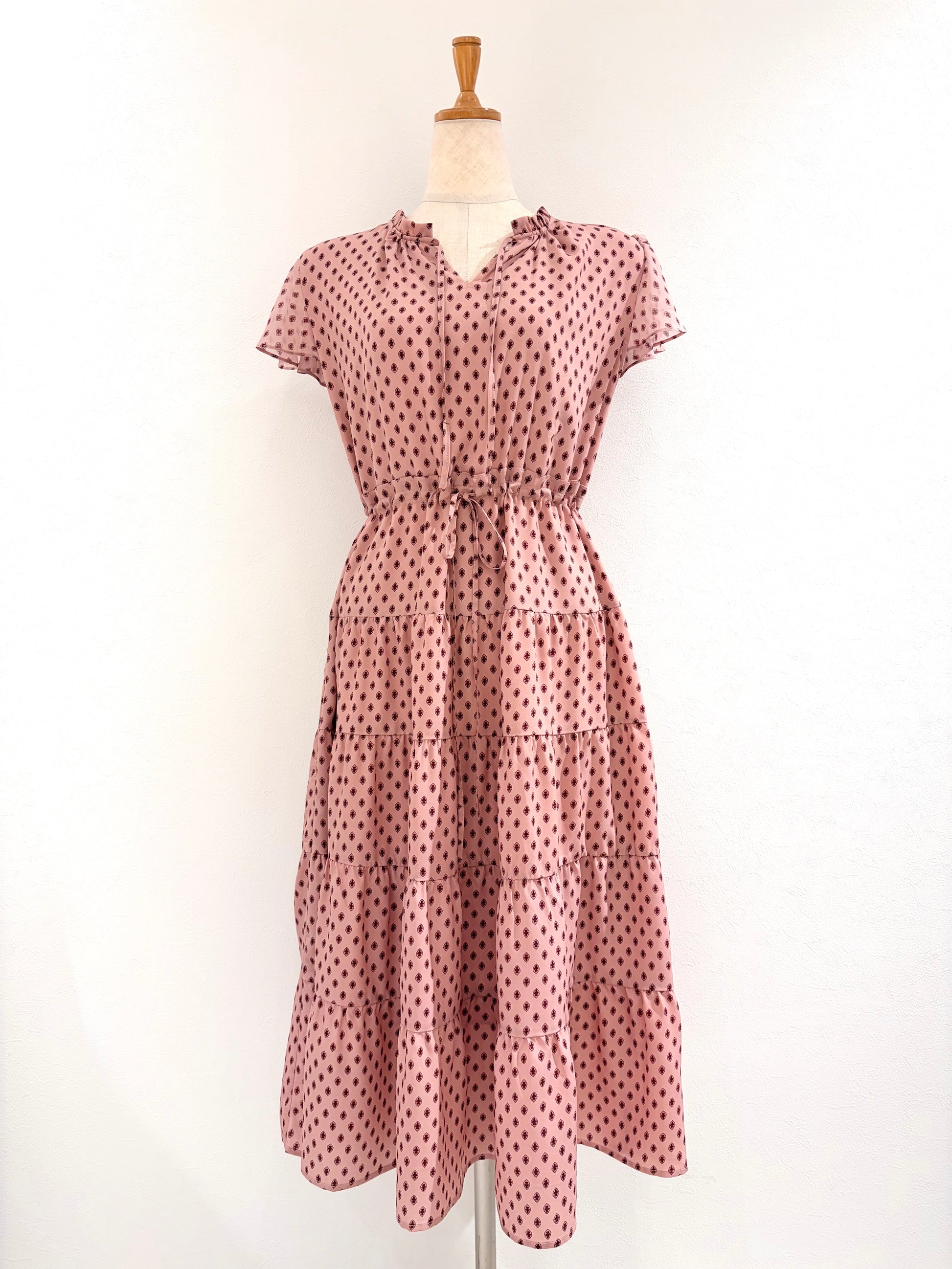フレンチスリーブワンピース〈ピンク柄〉