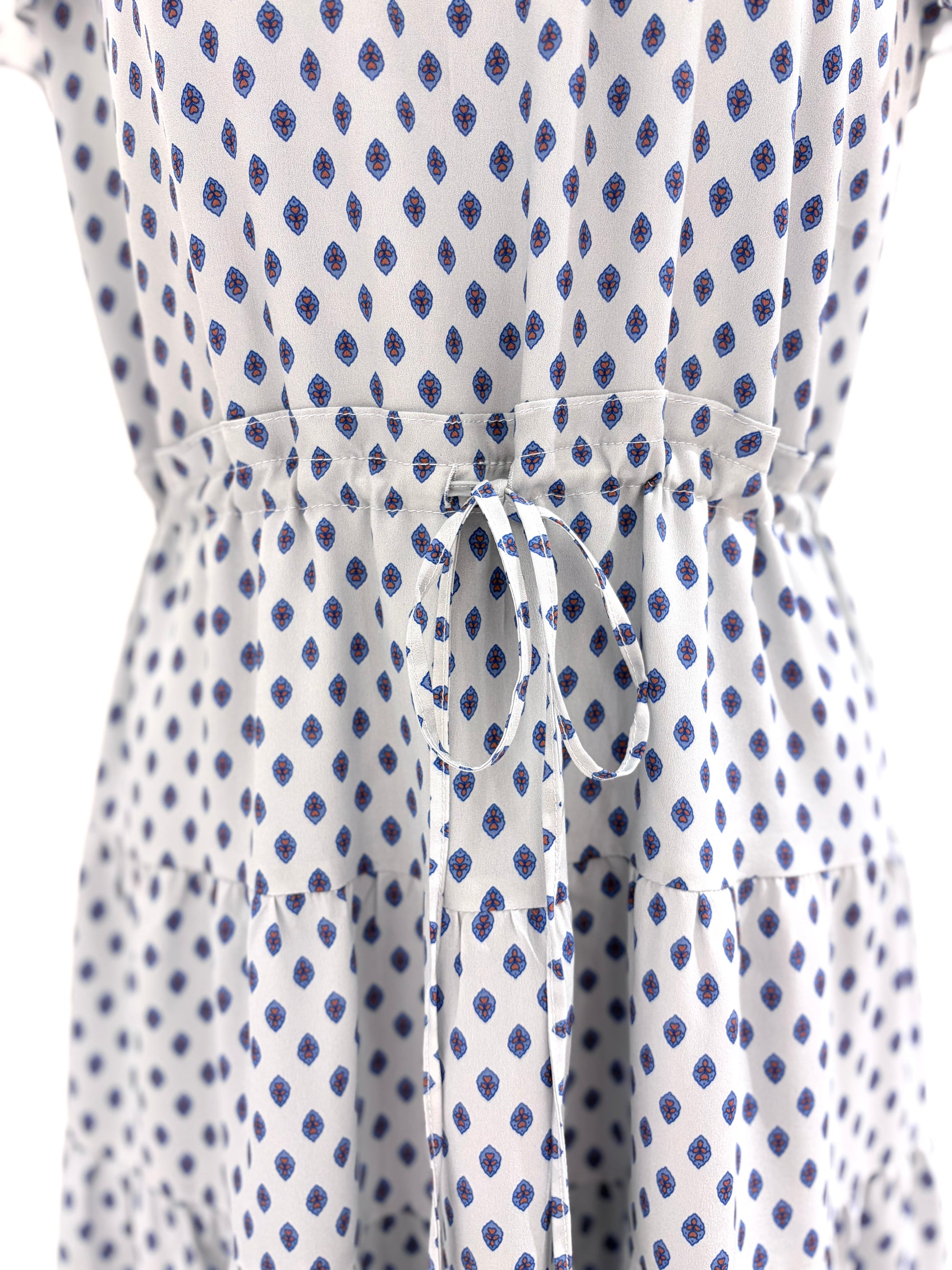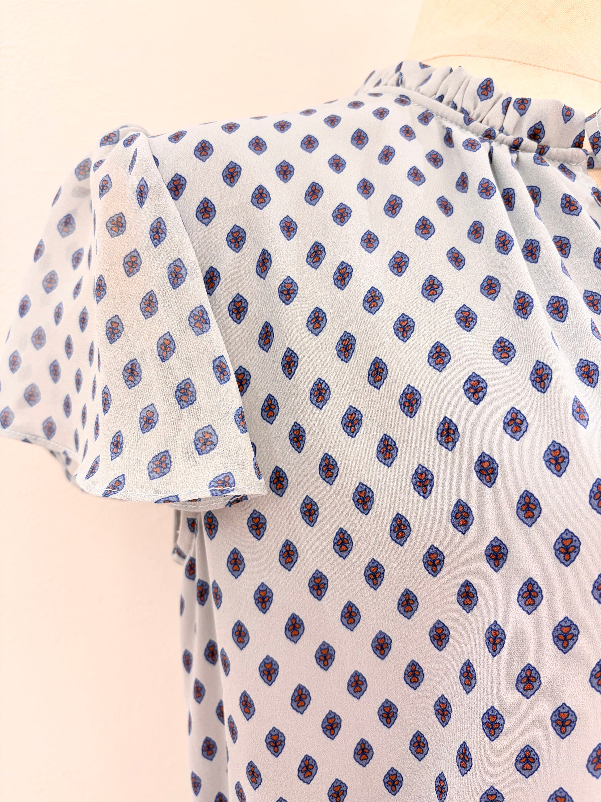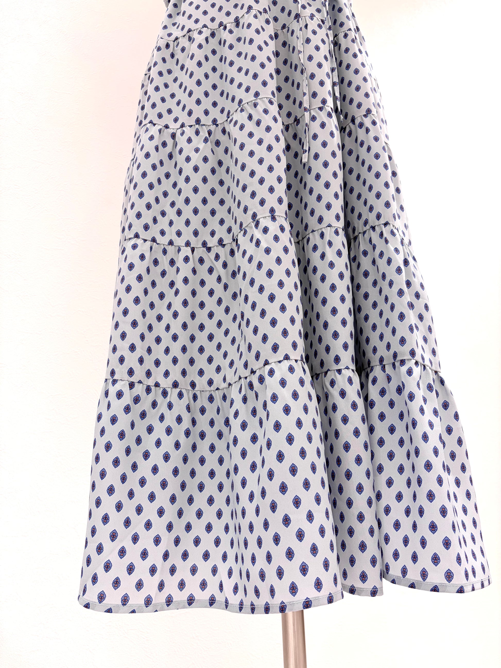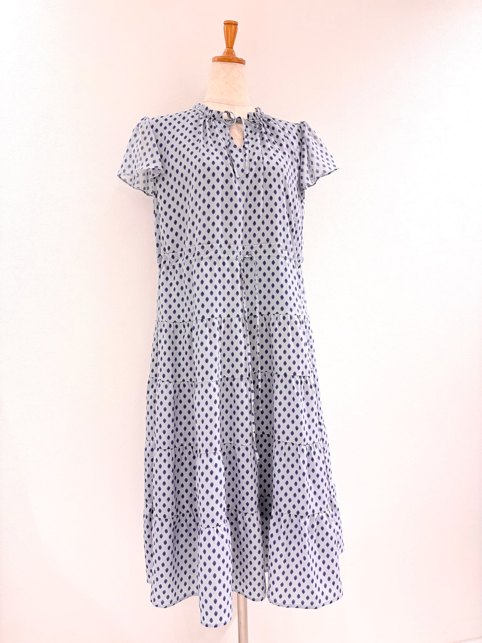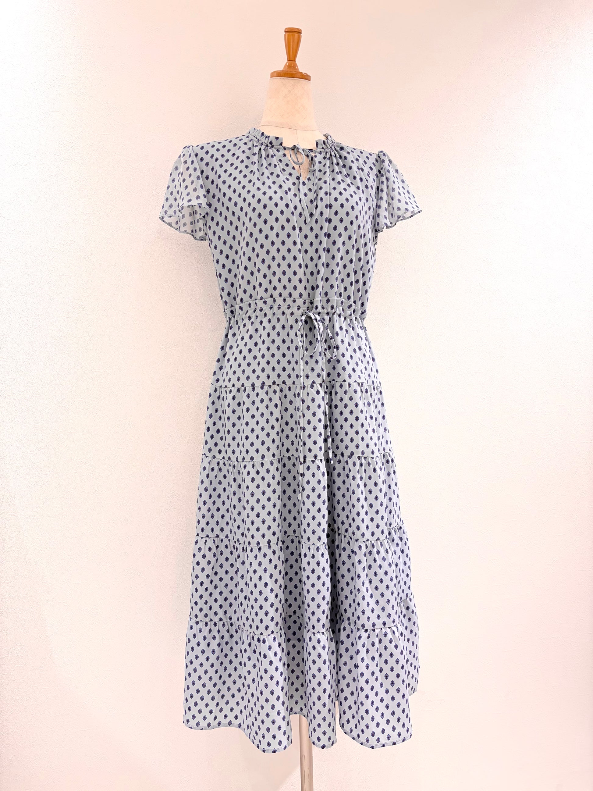 フレンチスリーブワンピース〈ブルー柄〉
