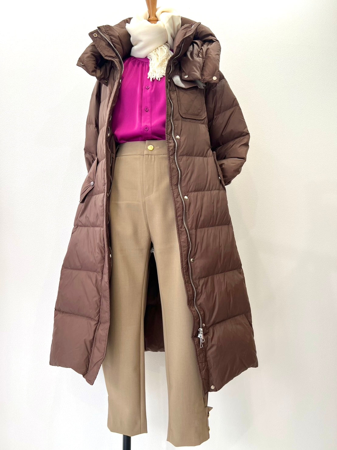ファスナー付きのロングダウンなので、しっかりと防寒してくれます✨