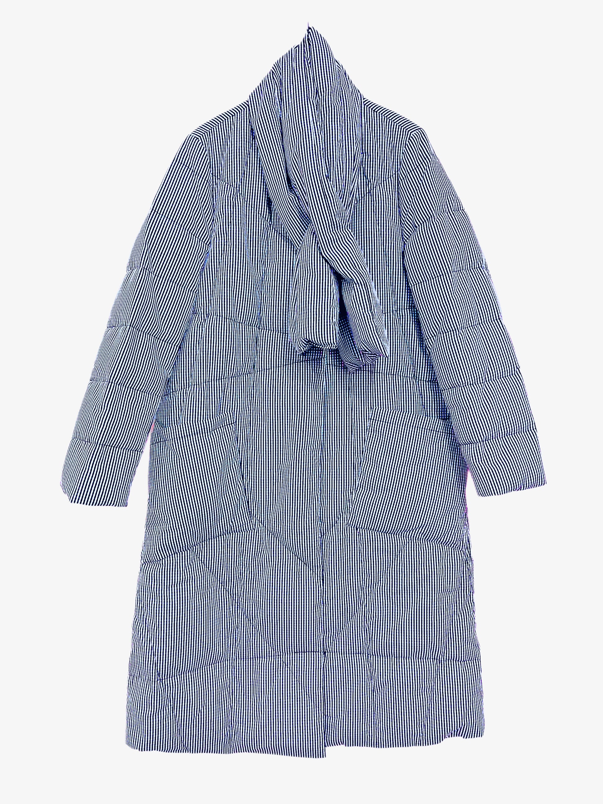 マフラー付きエーラインダウンコート〈ブルーチェック〉