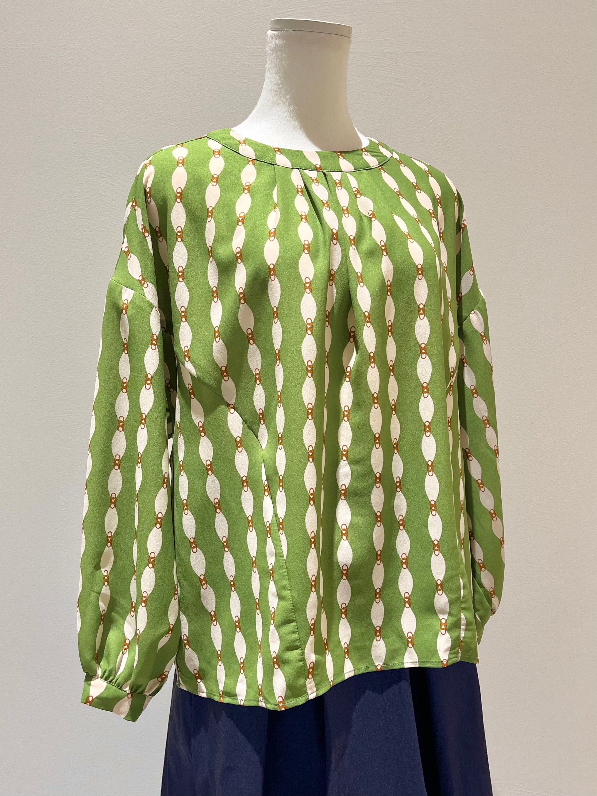 ラウンドネックオーバーサイズブラウス〈グリーン〉