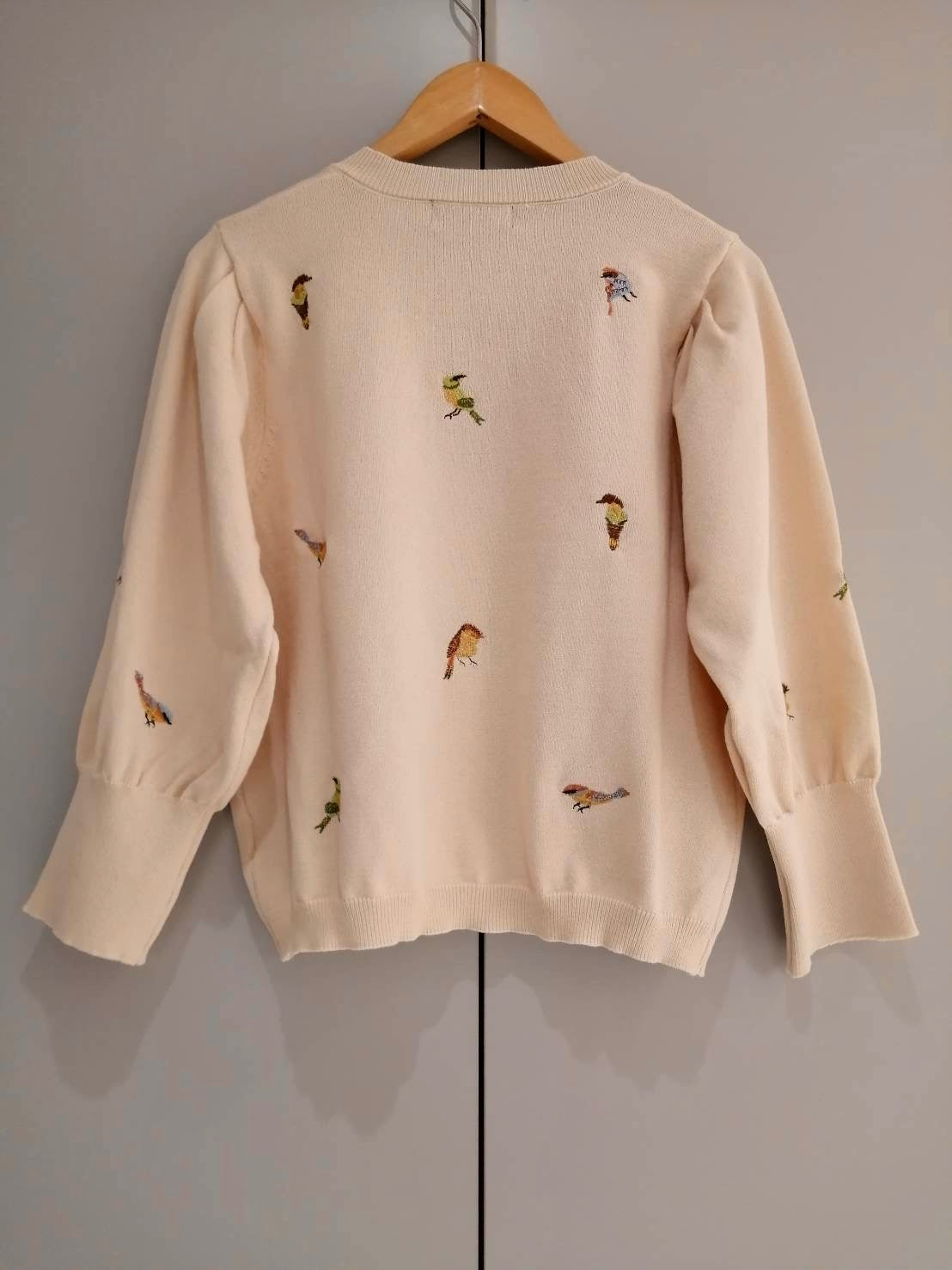 小鳥刺繍ニットカーディガン〈ベージュ〉