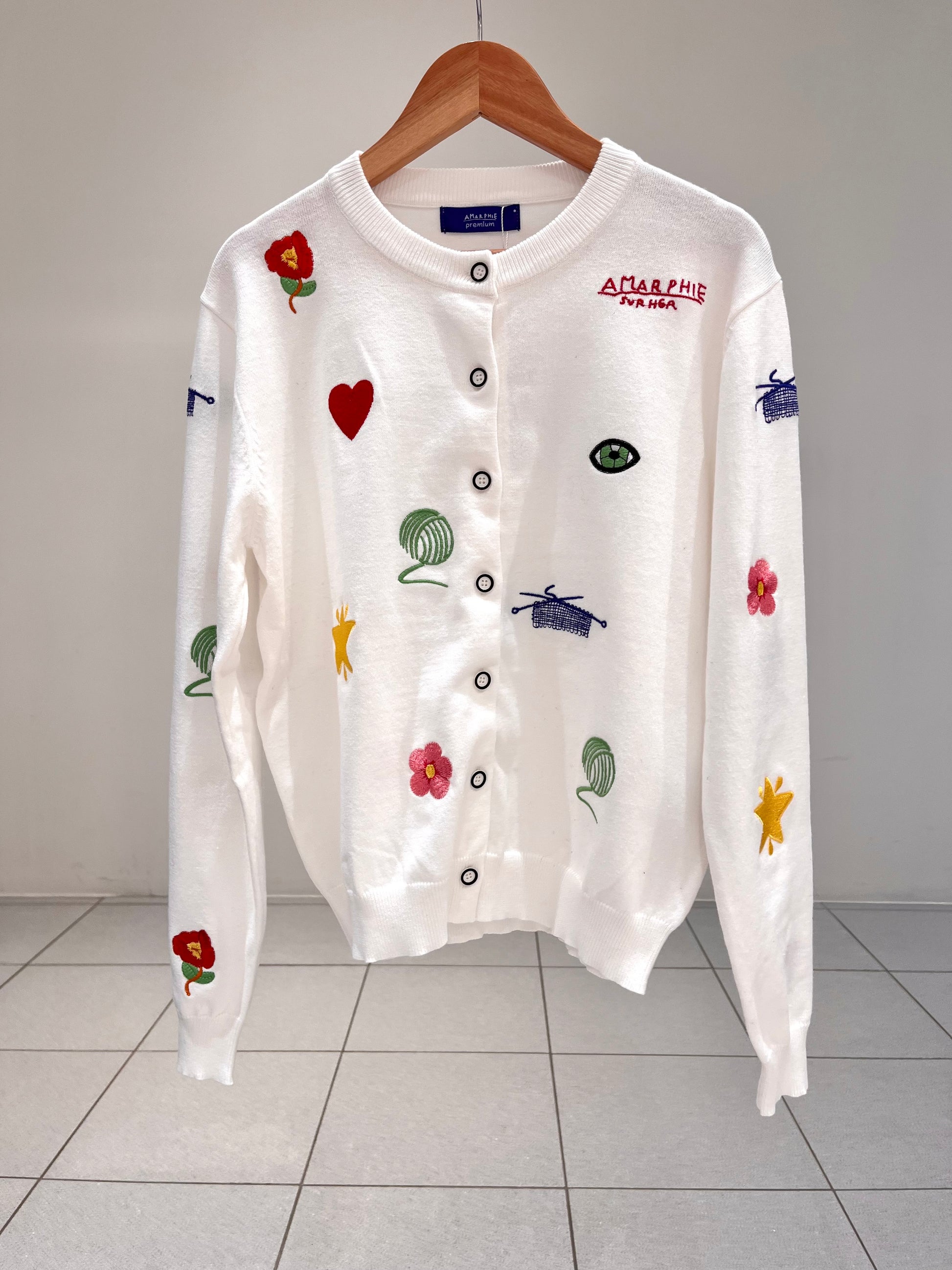 🆕モチーフ刺繍カーディガン〈ホワイト〉