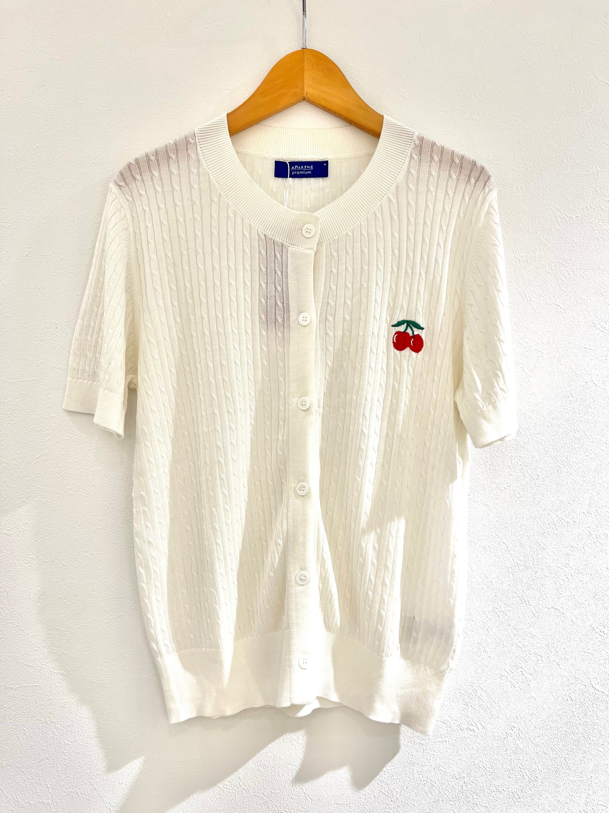 さくらんぼ刺繍半袖ニットカーディガン〈ホワイト〉