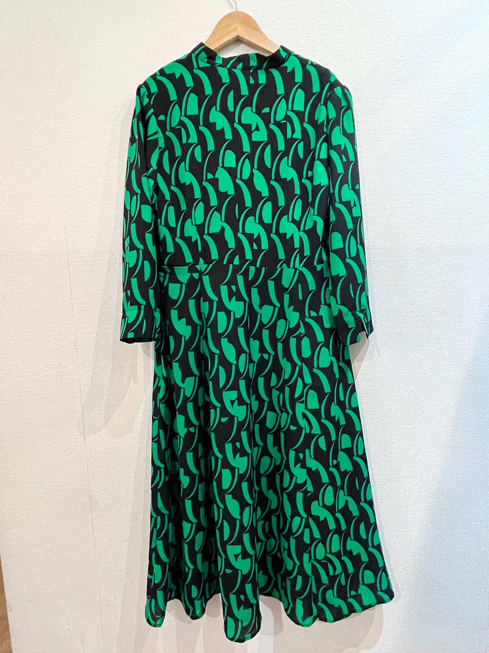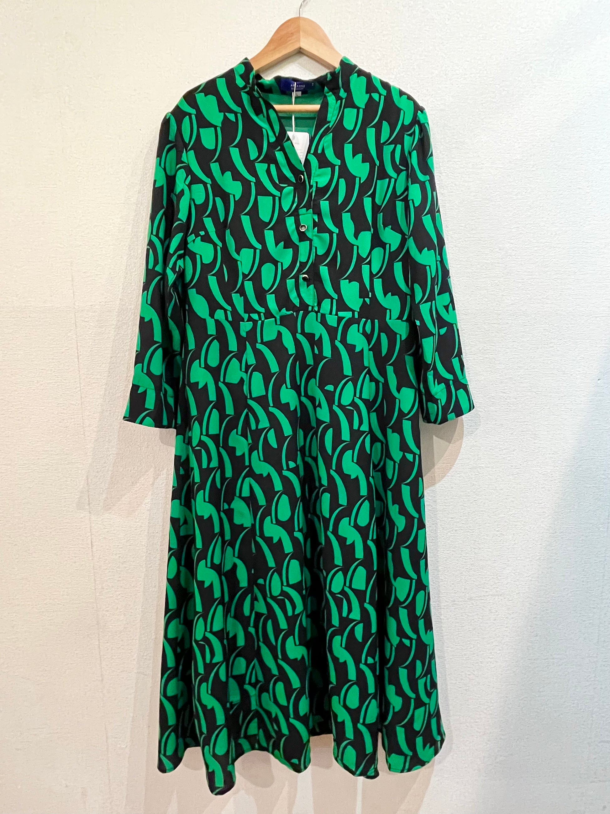 V襟七分袖ワンピース〈グリーン〉